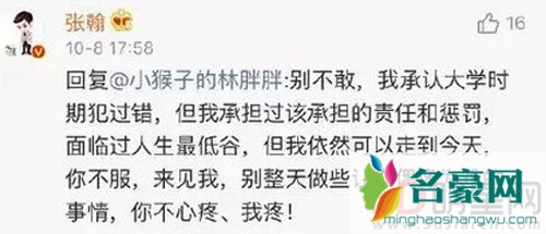 张翰回应后娜扎的这名粉丝也丝毫不怯场,直接回应说自己不敢,并提及了张翰早年拖行交警一事,眼看着旧事重提,张翰又做出回应:“我承认大学时期犯过错,但我承担过该承担的责任和惩罚。别整天做些让你偶像为难的事情,你不心疼,我疼!”霸气维护女友,可以说是相当爷们儿了,只希望两家粉丝能够和睦相处,毕竟你们的爱豆可是天天和人家亲亲密密的生活在一起呢。