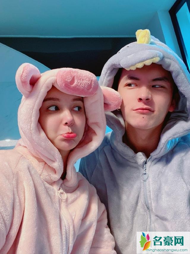 照片中,李雨桐和男友吴懿韬都穿着毛茸茸的睡衣。李雨桐穿的是浅粉色的猪猪头睡衣,而吴懿韬则穿着浅蓝色的恐龙睡衣。画面中两人甚是甜蜜,戴着睡衣帽子的李雨桐依靠在男友肩上,面对镜头浅笑。