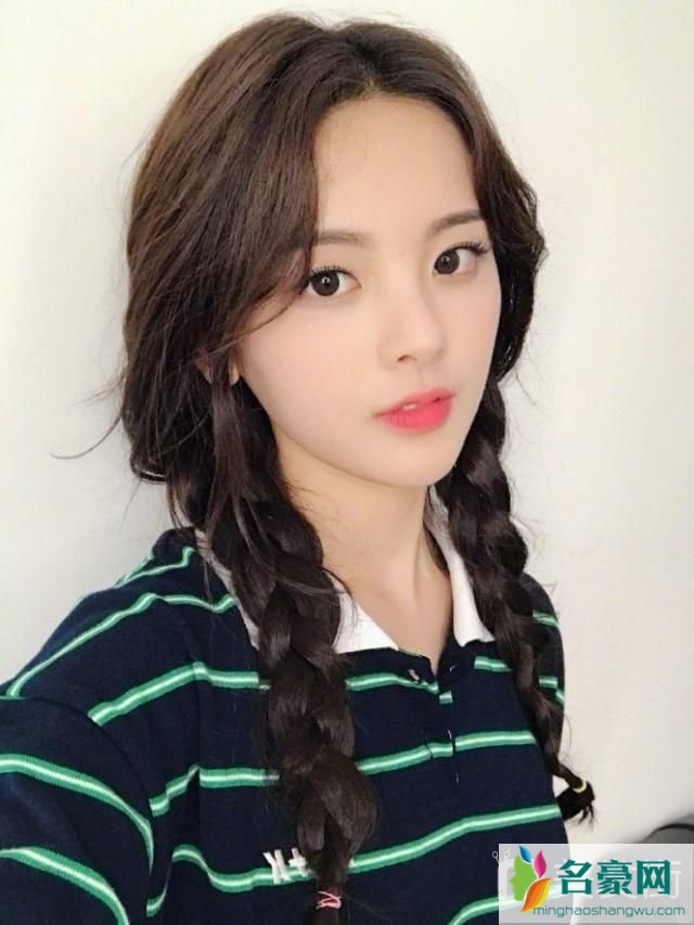 杨超越也是这款韩式羊角辫,她的发量很给力,编出两条麻花辫,整个人看起来娇俏可爱,非常的甜美可人。即使穿的是偏中性的条纹POLO衫,效果也是十分少女的,宛如是初恋女神的样子,让人一看就想要恋爱,有没有?