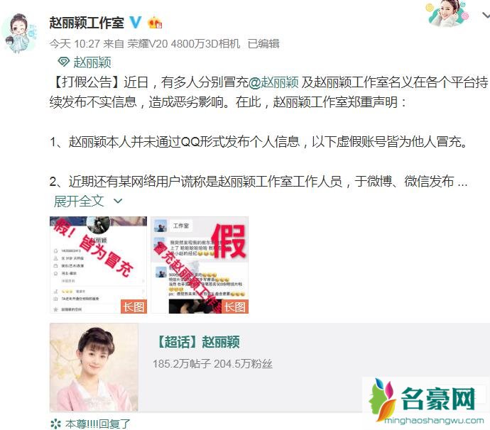 近日在各个社交平台上都出现了和赵丽颖有关的消息,于是赵丽颖工作室怒了。赵丽颖被冒名发布不实信息,工作室终于辟谣了。假冒信息并不只在一个平台上,现在比较火的社交平台上出现了多个和赵丽颖有关的账号,不仅有赵丽颖个人号,还有粉丝交流群,甚至还有人冒充是赵丽颖工作室人员,这让大家防不胜防。