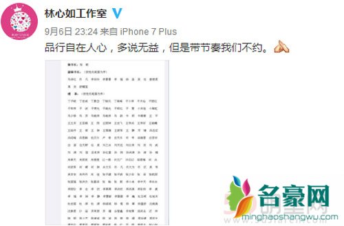 周杰在微博上写道:“当初如果我真的强行舌吻某人,她为何不在当场提出抗议在她们的剧组里,难道现场工作人员和导演都是我的亲戚?”然后自问自答的解说因为:“她没有想到多年后网络会如此发达,大陆的土老冒们也会看到她们省的节目,她们在自己节目里诋毁大陆人的内容被爆光了而已。”这种明显带有政治上的diss让大家热议纷纷,与此同时林心如工作室方面也针锋相对的回应,而他们的回应意在否认部分评论里联想的林心如是台独一说。