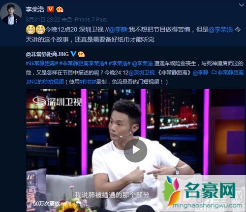 在车祸发生被送往医院后,李荣浩因为伤情过重抢救的时候无法打麻醉,所以在50多个小时的急救过程中,他都是全程保持着清醒的意识接受医生治疗,虽然节目上李荣浩说这件事情说的很轻松,但周围的气氛却很凝重,不少观众一度落泪心疼他的遭遇,《非常静距离》的主持人李静更是在微博上写道:“我不想把节目做得苦情,但是李荣浩今天讲的这个故事,还真是需要备好纸巾才能听完。”