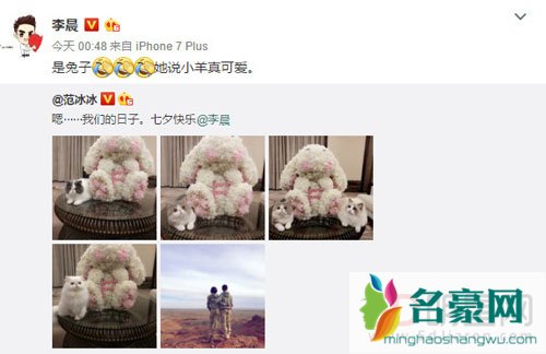 随后,李晨转发范冰冰的微博并调侃她说:“是兔子,她说小羊真可爱。”原来范冰冰是把李晨送给她的兔子给认错称小羊了啊。而网友们在看到他们这对情侣光明正大的秀恩爱后,催婚团又开始上线,纷纷在微博下面留言评论:“有本事秀恩爱,有本事结婚呀?”“祝冰冰女神和李晨同学一直幸福下去!”“催婚团上线打卡。”“赤裸裸秀恩爱,快结婚!”“好甜啊,什么时候结婚啊。”