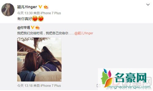 付辛博在8月24日突然发微博称:“我把我们交给时间,我把自己交给你”,并艾特颖儿,配图也是他搂着颖儿的背影照,这不明显的是在公开恋情嘛,很多网友看到这张图片后纷纷在下面祝福他们俩,而随后颖儿也回复说:“有你真好”,这口甜腻腻的狗粮大家吃的不知怎么样?回想他们俩一直以来的恋爱传闻,感觉付辛博颖儿这对和前不久公开恋情的唐艺昕张若昀一样,都是娱乐圈中“众所周知”的未公开情侣。