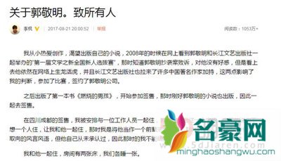 8月21日20:00,作家李枫在微博发表长文控诉郭敬明对其性侵的旧事,一时间引发网友热议。李枫在文中表示,自己将郭敬明当作前辈看待,却没想到遇到这样的事情,网友评论似乎对郭敬明有这样的行为不以为奇、甚至有人引出朱梓骁等旧事证明自己的观点,并表示力挺李枫说出自己的遭遇。可是有些网友却并不是这样认为的,因为这种事情其实就是两厢情愿的事情吗,当时你为什么不说出来,现在爆出来是什么意思,你要的肯定不仅仅是网友的同情吧!毕竟这种事情你能够描述的这样的清晰,是真的没有什么脸面可以说了,你被性侵,可是你以往的表现可并不是这个样子的,难道是你们之间已经没有什么利益可以说了吗?