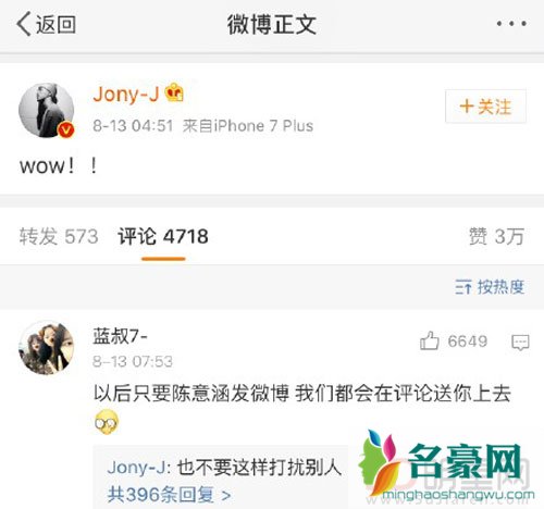 其实像黄旭这样的例子并不少见,今年《中国有嘻哈》的热播着实带红了一大批嘻哈歌手,除了有黄旭得到关晓彤的加油视频做鼓励之外,曾说过喜欢邓紫棋的艾福杰尼也获得了邓紫棋本人的微博关注,当下艾福杰尼就发微博:“当得知女神邓紫棋关注我以后,感觉我又瘦了”,邓紫棋本人还在下面给他留言加油,令他开心的不行,还有说过喜欢陈意涵的Jony-J,他也获得了陈意涵的微博关注,感觉迷弟们一个个都圆满了。