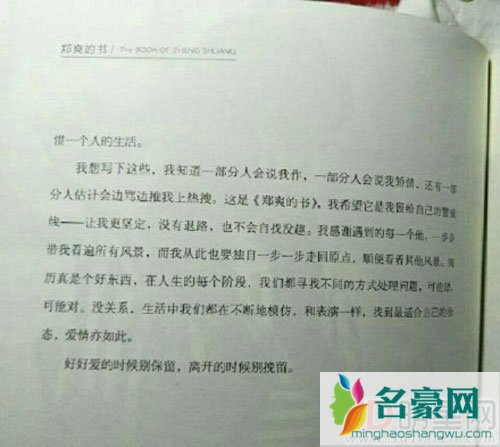 在郑爽最近出版的书籍中,提到了她与前任胡彦斌的恋情,在很多人看来郑爽当时和胡彦斌的恋爱过程并不美好,毕竟那时候骂胡彦斌的人可是不少,但没想到郑爽对他是有真感情的,在近日她所出版的《郑爽的书》中就谈到了与胡彦斌恋爱期间的100件小事,很多人看到后都为之感动,只可惜那些希望他们两人能够复合的网友恐怕是不能如愿了,毕竟当爱已成往事,何不放过彼此?