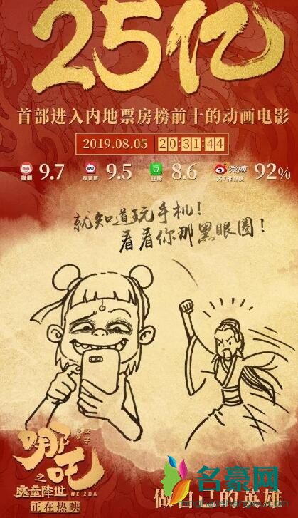 哪吒电影截止到8月5日票房突破了25亿元,如今哪吒电影已经超越《捉妖记》票房纪录了,哪吒电影进入中国电影票房总榜前十,也是唯一的一部动画电影,平均每天登上微博热搜4次,单日最多达7次,备受观众热议。