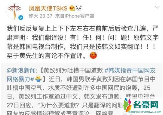 韩媒体在发文中表示:黄致列没有必要道歉。更是直言所有的一切都是翻译的问题!韩媒体将此事甩锅给字幕组一事在网上也引发了一定的争议,有懂韩语的网友表示字幕组翻译的没毛病韩媒体这甩锅太假了吃相太难看。
