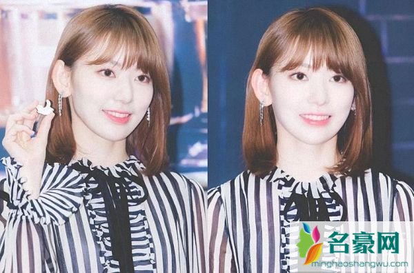 她在这里面的造型就是非常俏丽的短发,和申敏儿款有点类似,但是差别就在于它的发尾更厚一些,而且有剪空气刘海。