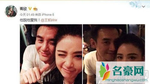 而事实上蒋欣与王凯之间的微博互动,真的是暧昧不已的。而之前蒋欣连发两条微博,出了四张与演员王凯的亲密合影,而合照中王凯也是十分的亲密的搂住蒋欣的脖子,两人之间头碰头,笑容温馨甜蜜,cp感十足。并且还说王凯说爱自己。而这样的说法虽然是调侃意味十足的,但是似乎就是在公布两人之间的关系的样子,而不少的网友表示这条微博的发布背景就是蒋欣与王凯之间一起嗨到天亮的夜晚。