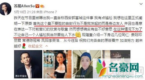 说起最近的时间中受到网友瞩目的就是曾经苏醒在节目中自称“西安郭富城”,而就是因为这样的事情一时间受到不少的网友非议,因为不少的网友表示苏醒过于将自己的名声高抬了。而就是因为这样最近苏醒似乎在微博中称这样的称呼似乎就是并不是自己自封的,而是有原因的,但是在自己回应这样的称号的同时,对于自己好友何洁还有张远的称号也曝光了,不少的网友表示何洁与张远真的仅仅是惨遭躺枪的人。