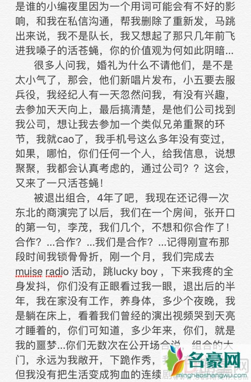 随着刘洲成家暴事件的曝光,网上骂他是渣男的网友不计其数,但是却没想到与刘洲成同在一个组合“至上励合”的队友马雪阳会出面点赞一篇骂刘洲成的微博,一时间网友们热议纷纷,5月18日上午,至上励合的前成员李茂在微博上写下长文,文中先斥责了马雪阳给刘洲成点赞的事情,认为他这是在“落井下石”,之后又提到了2012年他退团的内幕,惊爆自己离开组合是被迫的,因为当年其他四名成员联合起来对他说:“不愿再与你合作。”