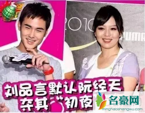 而在拍摄《绿光森林》期间,17岁的刘品言遇到了自己的初恋,也就是同剧组的演员阮经天。刘品言2005年17岁和阮经天拍摄电视剧《绿光森林》认识,因为工作关系,当时未成年的刘品言和阮经天谈起了地下恋,因在飞机上接吻被拍而恋情曝光,很可惜阮经天却不是刘品言的“真命天子”,交往7个月后便无疾而终,当时太过年轻的两个人遭到了二人所属经纪公司的极力反对,刘品言的母亲得知后也表示强烈反对,这段青涩的感情还没开花就已然枯萎,让人唏嘘不已。谁都没想到,09年媒体曝出了阮经天在台中和朋友喝酒时,吹嘘自己夺走了刘品言的初夜,一时把刘品言推上了舆论的风口浪尖,而这件事也给刘品言本人带来极大的伤害,刘品言在出席活动时候表示相信阮经天不会乱说话。而事情曝出者是阮经天的前经纪人陈孝志,因为他和阮经天签了5年合约,但是中途阮经天却跑去签约了其他经纪公司,此事也引起了陈孝志的恼怒,于是就对外各种爆料阮经天。而阮经天和刘品言随后也在访问中对此事声明,两人仅仅是谈了半年的纯纯的恋爱,意思是从没有发生过性关系,但是事实真相到底如何我们也不得而知。
