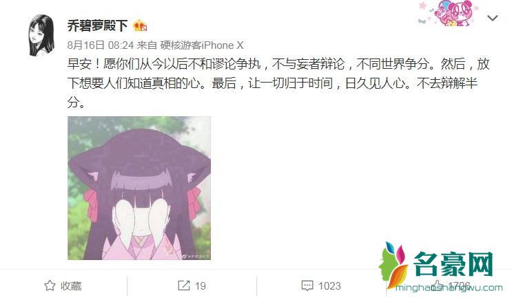 乔碧萝的这组发文疑似暗示网友们不再提起“萝莉变大妈”事件!其实在事发之后,乔碧萝也表示自己只是一个90后女生,可谓由于乔碧萝所做的行为太过火了,没有网友再选择相信她。