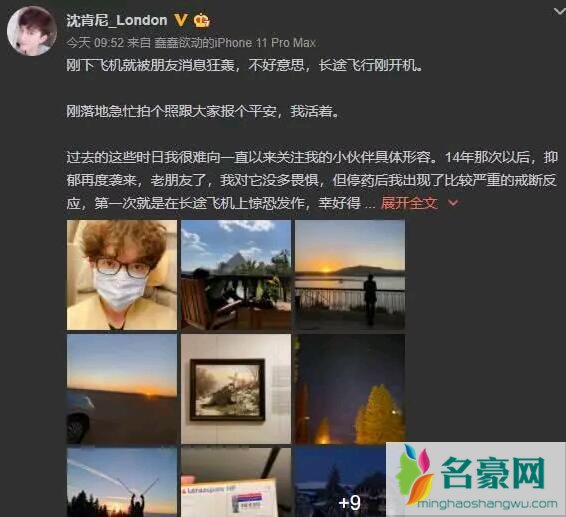 沈肯尼这段时间正在国外度假,今天回国,一下飞机就发长文跟粉丝们报平安,透露自己患上抑郁症,近半年去了好多国家散心,还晒出一张自拍照,稍晚时候,沈肯尼再度录视频向粉丝们报平安,这次视频来了,粉丝们终于可以放心了,而传他去世,系有心人造谣,昨日沈肯尼女友沈煜伦在微博发文透露法务已取证,表示将追究造谣者责任。