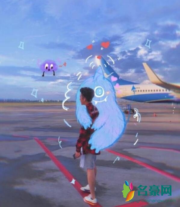 赵薇继子还晒出了自己远观飞机的背景照片,从背景上看,他的身材比例非常好,而且身材高挑,20岁的他已经达到这个身段了,条件也是非常不错的,他还配上了可爱的卡通装饰,又酷又帅气。