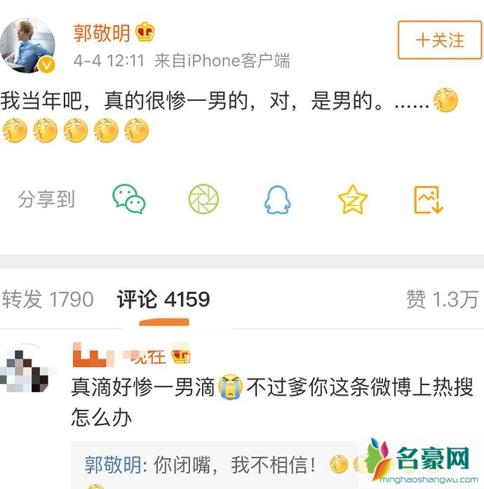 郭敬明发文表示自己当年很惨,郭采洁点赞。其实事情起因是在2016年郭敬明和魏坤琳一同参加最强大脑节目,魏坤琳和郭敬明因为赛制起争执,魏坤琳在节目中说了一局,怎么好像跟一个女儿吵架一样,虽然魏坤琳笑着说,但是郭敬明直接甩手走人。之后网友还指郭敬明不敬业,甩脾气,遭受网络暴力。