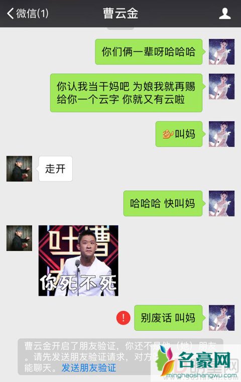 《吐槽大会》节目自开播以来便槽点多多,最近一期的嘉宾曹云金和李小璐更是连连话题制造者。曹云金被主持人质问,称常远和郭德纲是平辈,所以曹云金应该称常远一句师叔,曹云金竟然呛声回应:“我连师傅都没有,哪来的师叔啊?”疑似公开与郭德纲叫板,网友们都十分好奇郭德纲会怎么怼回去。节目结束录制之后曹云金在微博上传了自己与李小璐的互动,称被李小璐要求喊干妈,因为自己和贾云馨都是云字辈的。