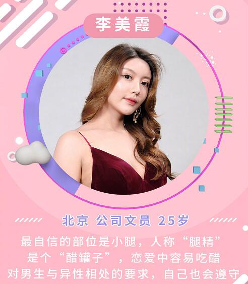 非诚勿扰女嘉宾李美霞来自北京,今年25岁的李美霞现在是一家公司的文员,李美霞拥有这超好的身材,人称“腿精”,是一个“醋罐子”,恋爱中很容易吃醋,贵男生与异性相处要求,自己也会遵守。