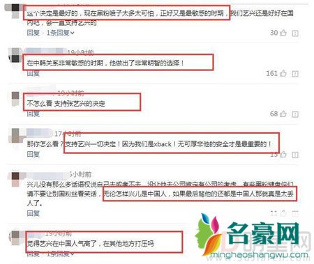 粉丝纷纷表示,张艺兴作为一位爱国的爱豆,能够在关键时刻大义凛然的做出正确决定不愧是中国偶像,此前曾在多起纠纷当中,张艺兴都带头更换自己的社交账号头像,即使被韩国粉丝骂也毫无怨言。此时的决定似乎也更加验证了张艺兴的爱国情怀,不过,随后其经纪公司也出面声明,表示张艺兴此次缺席是因为个人行程和exo演唱会发生冲突,不过很显然已经没有很多人关心真正的原因是什么了。