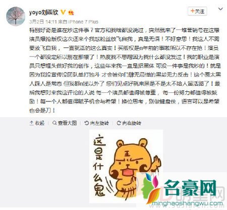 刘雨欣回应