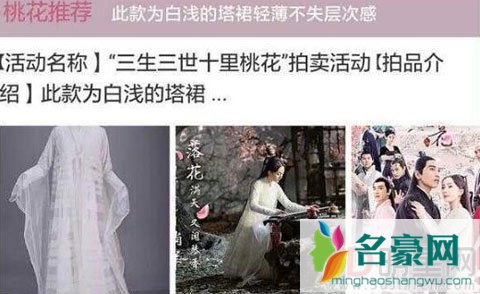 随着《三生三世十里桃花》即将播放完结,该剧组居然趁着电视剧的热潮卖起了女主角白浅的“原味剧服”,即剧中杨幂所传的白色漂亮仙服和一些佩戴过的头饰等,讨论度最高的要数杨幂在剧中穿过的白色薄纱仙服,在网上一经开售便被争抢一空,粉丝们一度将价格提高到五千元,但最后以人民币8501元卖出,之后杨幂扮演“素素”时候所穿过的麻料洋装同样掀起了热卖。但其实之前杨幂因为穿搭随性就曾卖过很多同款,很容易买到。
