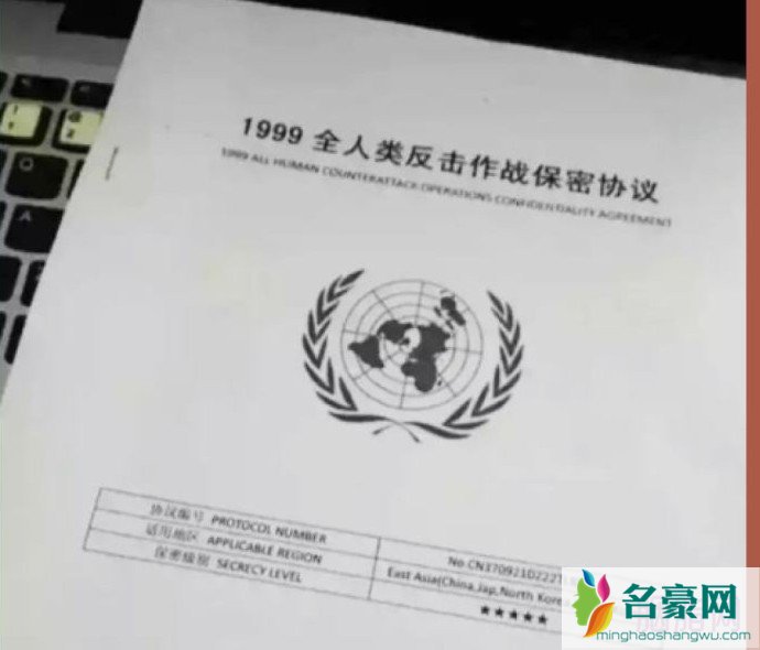 网友们所流传的保密协议如下:1999年12月初,萨比星人军队驰援,敌我双方在冥王星进行了一场空前绝后的宇宙追击战,伏羲舰队主舰麒麟号遭遇埋伏,腹背受敌,在最后时刻,麒麟号舰长董新带着满腔怒火,撞向了敌人的主舰,奠定了这场战斗的最终胜利,1999年12月27号,全军庆贺胜利,1999年12月28号,各军签订保密条约,1999年12月29号,消除非战斗人员记忆,1999年12月30号,最后的祭奠仪式,各国主要领导人齐聚大西洋,看着人类最后一艘宇宙战舰“崎岖号”,徐徐沉入海底。