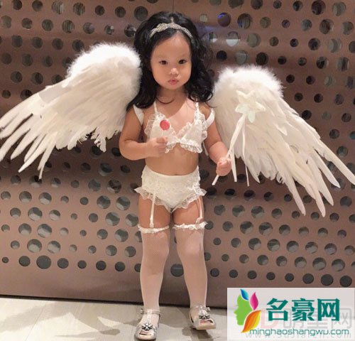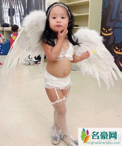 据台湾媒体报道,3年前关颖嫁给香港CEO朱志威,婚后二人产下女儿朱古力以及儿子Phi Phi,一家人的生活过的也是幸福满满。10月30日,关颖带着女儿到幼儿园参加万圣节变装趴,只见关颖把自己2岁的女儿打扮“维密天使”的样子,让女儿穿着白色蕾丝内衣和内裤,脚上套著吊带丝袜,背著大翅膀,手中拿着仙女棒和棒棒糖,将性感和可爱融为一体,很多网友看了这组照片后纷纷感慨:“穿的好性感”、“有点辣!”