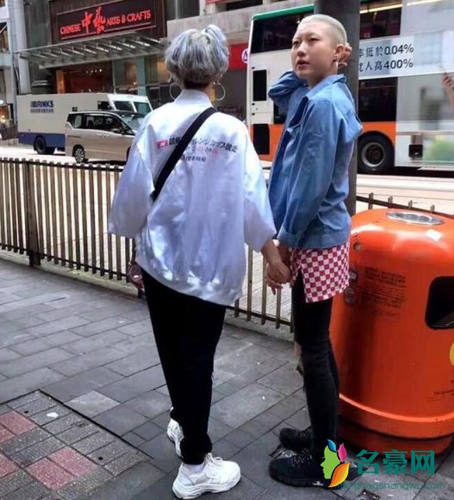 而爱妻Andi的衣穿打扮也是非常时尚靓丽,Andi一头银灰发搭配超大圆耳环扮靓,身穿白色原宿风外套潮范十足。爆料的网友表示小龙女和老婆是在中环闲逛,实在是因为两人发色太抢眼没忍住多看了急眼。