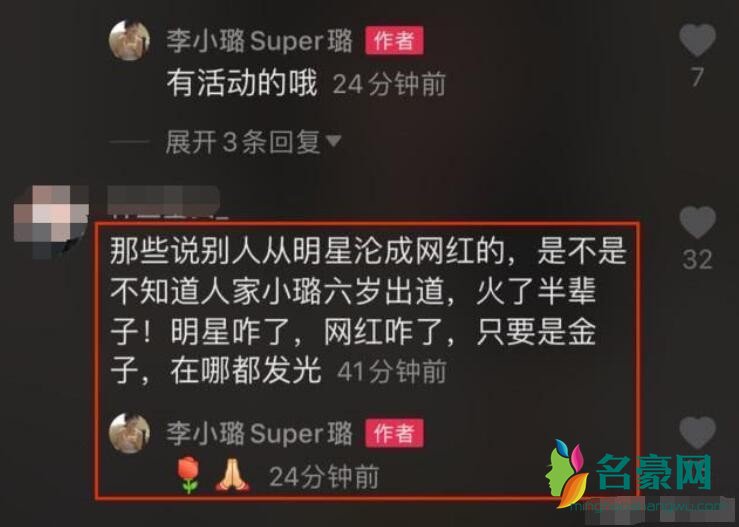 大家纷纷留言评论表示她越来越网红化,而且越来越low。其中一位粉丝反驳称:“那些说别人从明星沦为网红的,是不是不知道人家李小璐六岁出道,火了半辈子!明星咋了,网红咋了,只要是金子,在哪都会发光的”。