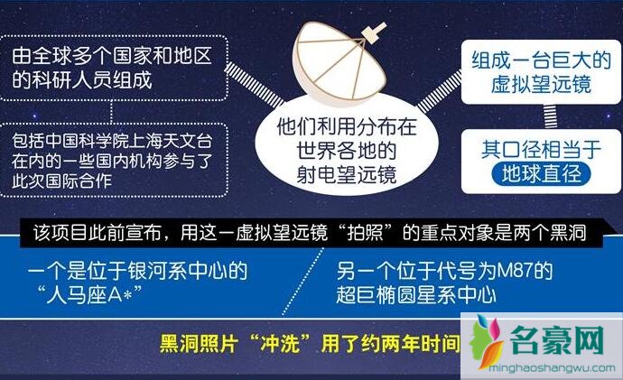 EHT项目,是由全球200多位科研人员共同达成的重大国际合作计划,通过“甚长基线干涉技术”和全球多个射电天文台的协作,构建一个口径等同于地球直径的“虚拟”望远镜,用于黑洞探测。理论上,黑洞是爱因斯坦广义相对论预言存在的一种天体,它具有的超强引力使得光也无法逃脱它的势力范围,该势力范围称作黑洞的半径或称作事件视界。此前,天文学家都是通过各种间接的证据来表明黑洞的存在,而EHT项目,则是通过这个拥有地球直径的“虚拟望远镜”直接观测到了黑洞边缘的图像。专家称,人类首张黑洞照片的问世,将对研究黑洞具有重要意义。