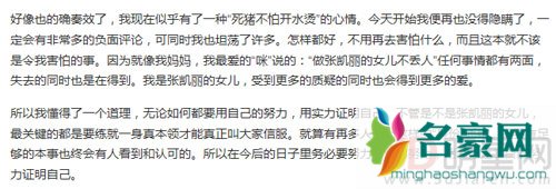 张可盈发表了这篇长文后,妈妈张凯丽转发微博称自己看的都要泪奔了,语气中充满对女儿的骄傲,透露女儿:“6岁登台,高考577分,艺考四所顶尖大学录取。”足以让成为自己的骄傲,在“今晚的‘一年级’后,一切释然,不再苛求自己和任何人,大大方方坦坦荡荡,一切的光环都会消散,只有你自己闪光。”张凯丽转发后,许晴、华晨宇、唐嫣、张翰、何炅等多位明星好友纷纷转发,为张可盈加油打气。