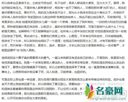大家还记的在综艺节目《夏日甜心》中有着不俗表现的张可盈吗?当时她和许多多才多艺的少女一样,从一个小透明慢慢成长到现在有人关注,有人喜欢,如果不是近日张可盈在微博上发长文公开身份,估计大家还不会知道张可盈竟然是张凯丽的女儿吧,而之所以选择隐瞒自己星二代的身份,说到底还是因为心里的那点小小的自卑。