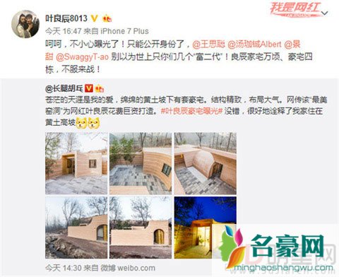 对于众多的网友曝光的这位男士的家境似乎属于并不是十分的有钱,还是这位男士自己努力的男士,而就是这样的一位男士虽然最近的时间中因为偶然的情况走红的样子,但是最近的时间中网友爆光的一个外形是窑洞的形式的豪宅,其中的装修十分的豪华,而最近的时间中网友就曝光了其实这样的豪宅就是叶良辰的的,而最近的时间中叶良辰也承认这套豪宅,并且还主动艾特王思聪等人,并且叫嚣不服来战的言语,十分的“嚣张”的样子,而这样的举动真的是不知道这位男士要做什么。