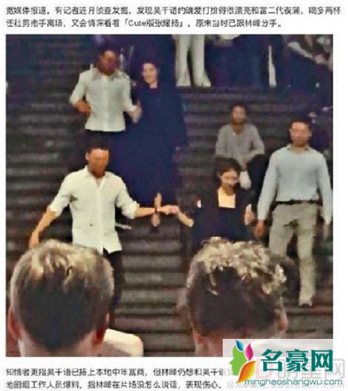 其实林峰自从与吴千语谈恋爱以来,一直都很宠爱这个小女朋友,但是有传闻称林峰的父亲并不喜欢儿子的女朋友,认为其太过拜金,在林峰与其恋爱期间两人曾游遍东京、冲绳、大坂、米兰等地方,林峰还送其名牌手提包,出动七人车以及司机管接管送,但无论林峰再怎么有钱,也经不住吴千语这种拜金的方式,时间长了两人之间肯定会出现隔阂,果不其然最近他们俩被传分手后女方就迅速搭上了中年富豪,倒是可怜了林峰长久以来的用情至深。