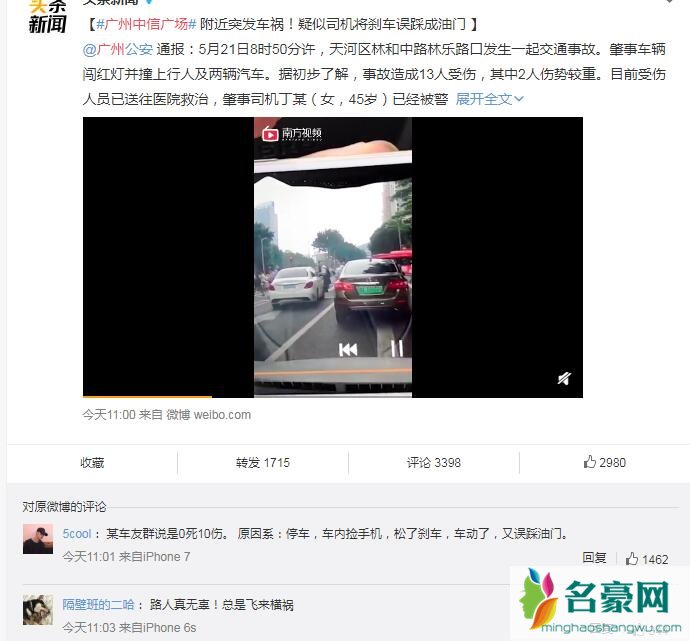 广州天河奔驰女司机车祸原因