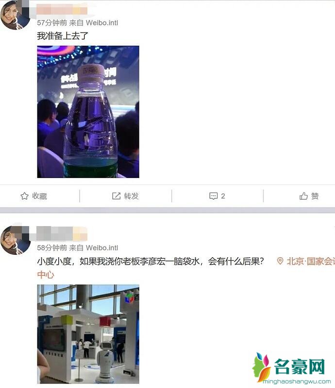 李彦宏被泼水,但是李彦宏淡定继续演讲,会场有人喊李彦宏加油。对此,有网友表示恶作剧太过分了,不管是什么原因,都不该这么做。场面一度很尴尬,但李彦宏很快调整状态,现场嘉宾报以热烈掌声,泼水男子很快被保安制服。 随后泼水者身份遭扒。