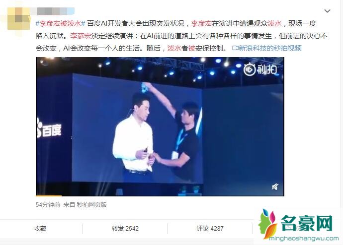 李彦宏被泼水是怎么回事,日前,李彦宏被泼水引起了不少网友关注,揭露李彦宏被泼水原因场面一度尴尬,不过在李彦宏被泼水后依旧不少观众十分鼓励支持他,李彦宏被泼水也迅速调整了状态继续演讲,李彦宏为什么会被泼水呢,泼水者身份遭扒,究竟是怎么回事?