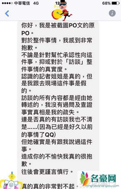 随着事件的发酵,爆料炎亚纶承认性向的博主事后公开道歉,表示的确有认识记者姐姐,但“跟去现场采访”是假的,所有内容都是记者姐姐转述,连是否真有访谈都不清楚。针对原博道歉,炎亚纶表示身为艺人看过太多匪夷所思的现象,也借此呼吁粉丝不要再留言问“这是真的吗?”他连回应都懒得回应,并希望大家能把科技用在对的地方,对的方向和对的人事物上,不要在没有证据的情况下胡乱造谣生事。