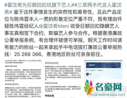 霍汶希也算是圈内知名度相当之高的一位经纪人了,原本大家比较熟悉的都是跟随在谢霆锋身边的霍汶希,但近日却因为陈伟霆事件使得霍汶希被骂惨咯,具体的事情是这样的,霍汶希前段时间为英皇旗下艺人陈伟霆接了一个代言广告,大家都知道,陈伟霆现在的人气那可是相当之高,所接的代言产品很多都是国际大品牌,但没想到近日却突然接了一个微商代言的广告,这可是让粉丝们炸开了锅,纷纷换头像要求毁约,抵制自家爱豆接下这个“三无”品牌的代言。