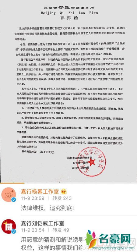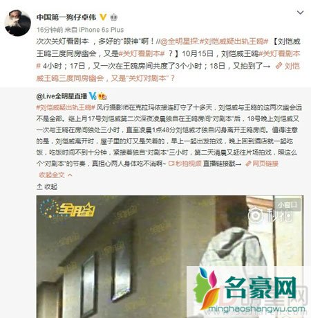 11月9日,卓伟团队放出一段爆料视频,视频显示,正在拍摄电视剧《莽荒纪》的刘恺威和王鸥当天收工回到酒店之后各自回房,到了晚上八点多钟刘恺威却独自一人前往王鸥房间,随后孤男寡女共度一室长达四个小时,直到凌晨十二点多才回到自己房间,这期间两人都做了什么没有人知道。该视频一经放出刘恺威出轨的绯闻迅速传出,而当事人双方在得知此消息后也于当天回应,刘恺威称由于剧本不断变化,因此自己和王鸥不得不随时进行讨论,当天也是在房间讨论剧本而已。而王鸥也发声“还能不能好好玩耍”疑似否认做小三。刘恺威公司紧接着发表律师声明,对卓伟团队提出警告,而杨幂在接受采访时也表示自己相信刘恺威,一切都朝着好的方向发展,却在11月10号发生反转。
