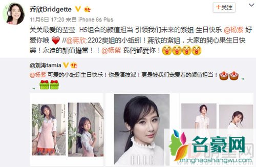 杨紫生日好友送祝福