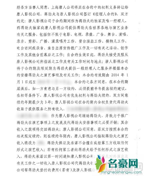 今天就唐人与蒋劲夫的解约一案再度更新动态,唐人影视公司代理律师杨曙光在微博上公开唐人与蒋劲夫合同纠纷一案一审的判决结果,从判决结果上来看,蒋劲夫似乎并没有讨得好处啊,因为蒋劲夫打算与唐人解除经纪合约的诉讼请求未能获得法律认可而被驳回,双方经纪合约继续履行,蒋劲夫经纪约仍属唐人。此外由于蒋劲夫单方面宣布与唐人解约后,并没有经过唐人的允许就私自在外接演艺活动,因此蒋劲夫还被判决需赔偿唐人的佣金损失。