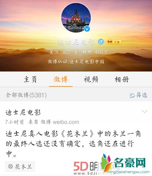 对于外界的种种传闻,1月13日下午,迪士尼电影官方微博给予否认,称“迪士尼真人电影《花木兰》中的木兰一角的最终人选还没有确定,选角还在进行中。”正式否认外界说法,表示消息不实,选角还在进行中,尚未确定,据悉迪士尼真人版《花木兰》已定于2018年11月2日上映,近日在中国招募演员。
