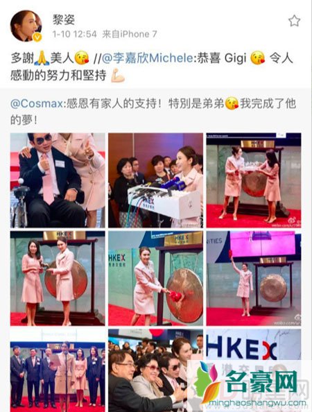 昨天,在香港举行的黎姿名下的医美公司成功上市仪式,现场出席了不少的商业精英,作为一手将这间公司做到现在这么优秀的地步的老板黎姿作为发言人也身穿粉色职业装现身现场。如果说以前的演员黎姿是一个漂亮的女演员的话,那么,现在的黎姿则在女性的柔美当中又多了一份职场人的干练。头发利落的梳起来,仪态大方的发表上市宣言,敲响香港交易所的那扇大锣之后,未来的日子里,黎姿所管理的这家公司就不单单是以前那个小打小闹的公司那么简单了,肩负的责任就更加巨大。黎姿除了感谢很多人之外,始终坚称是在替弟弟管理,总有一天弟弟会醒来,这家公司也依然会属于他。