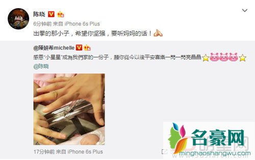 陈晓和陈妍希这一对明星夫妻可是很多网友羡慕的对象,在鱼龙混杂的娱乐圈中他们俩让大家见识了什么叫做嫁给爱情的模样,随着陈妍希怀孕,陈晓可谓是对娇妻照顾有加,而最近陈妍希也如愿顺利产子,那么这位刚刚出生的陈晓儿子会叫什么名字呢?该不会真的叫“陈以三”吧。