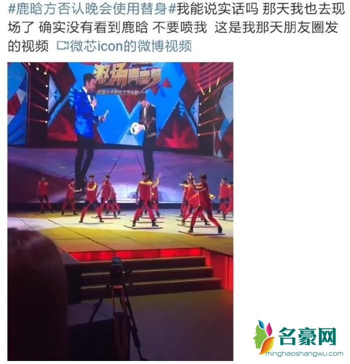 据悉,近日有网友在网上爆料声称鹿晗在2017年的五四晚上上,因为迟到而选择了使用替身演出。并且该网友还表示现场采访的画面都是通过替身+彩排视频来完成的!
