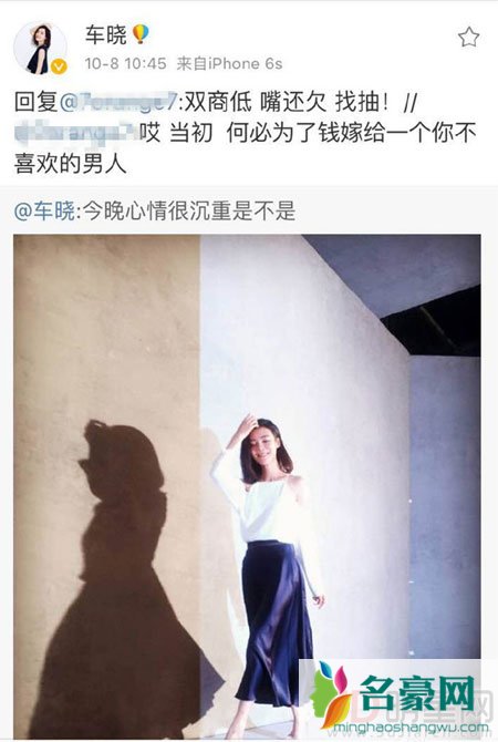 而就在同一天,演员车晓同样受到网络暴力的影响,而车晓也没有选择忍气吞声而是将该网友的评论贴出并气愤的回应道“双商低,嘴还欠,欠抽”。众所周知,车晓在2010年时曾经有过一次婚姻,当时和山西首富李兆会走进婚姻的殿堂,没过多久就因为性格不合而选择离婚。感情上的事情本来就是随时变化的,然而有人却以车晓嫁给李兆会是贪图钱财,没有爱来形容她,这也触及了车晓的底线,这次的反击也让我们看到了经过乔任梁一事,大概不少艺人都已经想通,释放自我,希望可以让自己活得更加随心所欲一些吧。也希望网络暴力不要在频繁出现,让世界多谢些美好。