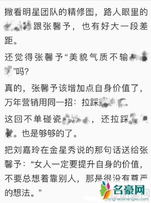 昨天下午,张馨予突然发博回应了所谓模仿捆绑范冰冰事件,表示自己没有靠山,而且一直都在努力提升自身的价值,活得独立自由有尊严。“你们见过谁每天拉着别人捆绑还要顺带踩自己一脚的吗?没有靠山就可以随便让你们一天天的写这些新闻来恶心我吗?我不正面回应就天天写,是谁在强拉别人捆绑在一起?人的忍耐也有限度的。”对于张馨予的大爆发,不少围观群众还是一脸懵逼的,不过事后了解的原因出自于最近的巴黎时装周,张馨予被指造型妆容均都在模仿范冰冰。